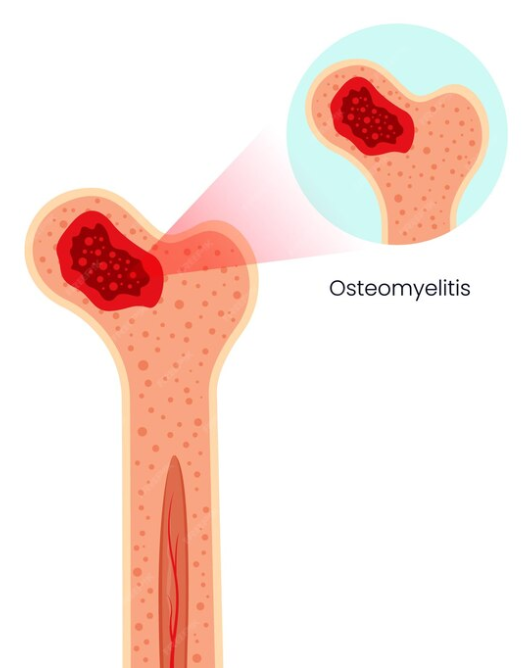 Osteomielitis je vnetje kostnega tkiva, ki je običajno povzročeno z bakterijsko okužbo.